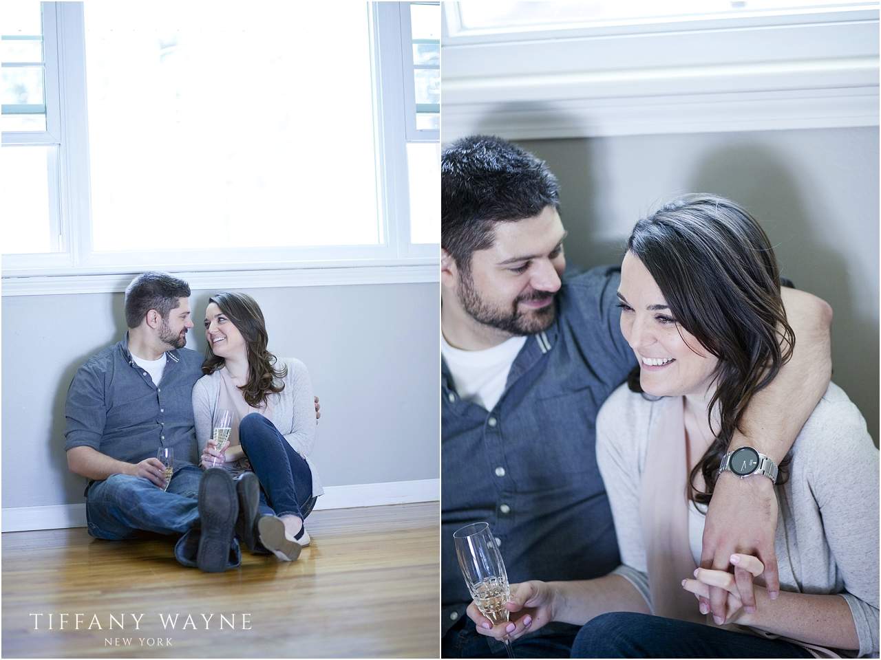 Capturing these two at their new Saratoga home was nothing but pure joy, truly. They were so excited and so in love! I have to say, it was so cool to work with an empty canvas. The light was streaming in from the windows and lit up the rooms beautifully. They had a bottle of champagne ready for a toast to their new home…and they drank out of their wedding toasting glasses! It was perfect.