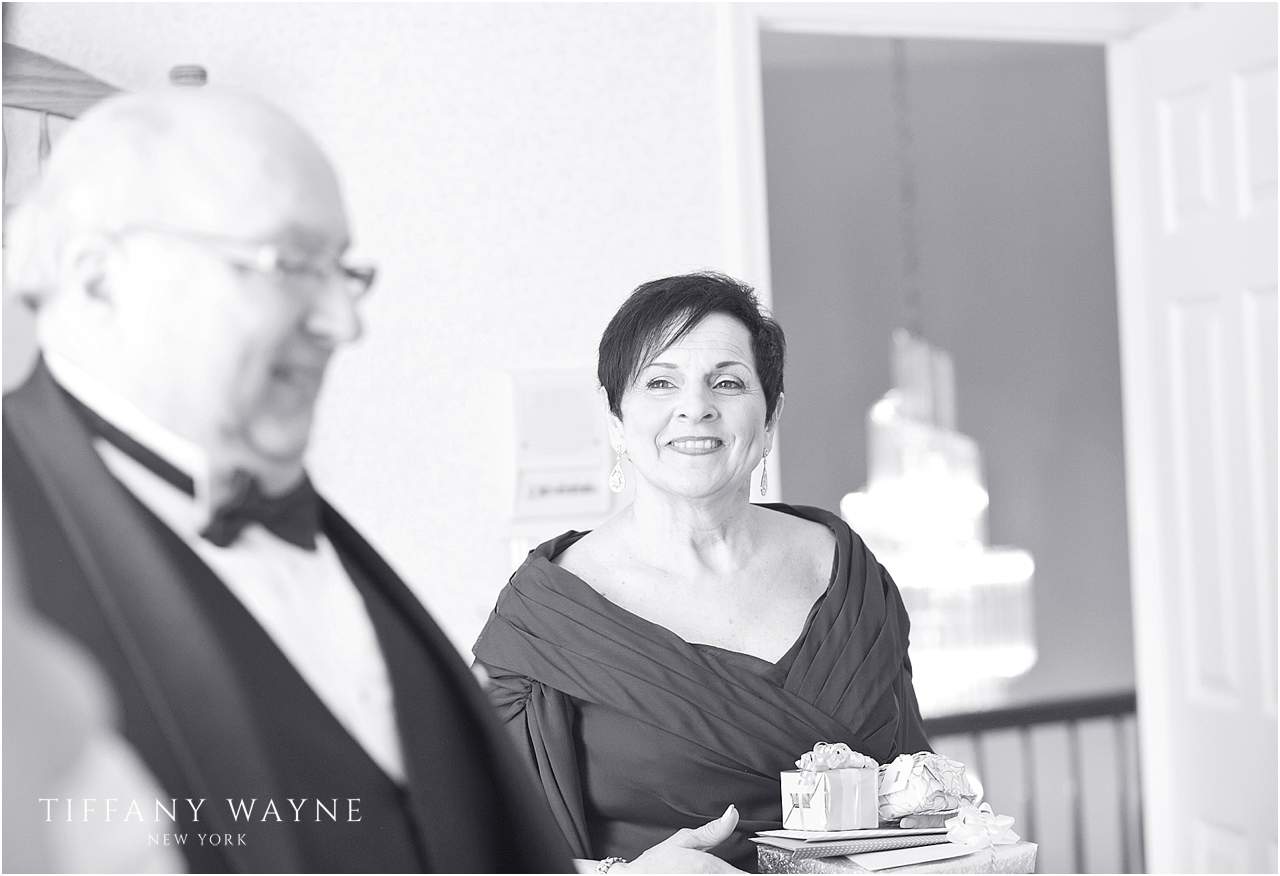 When the wedding day arrived, you can only imagine the amount of joy and love that consumed the air. It was a very special day… Not only for Kristin and Dennis, but for their families, too. When I arrived to Kristin’s childhood home, everyone was smiling and chatting away as the hair and makeup team got them all glammed up! Everyone looked amazing… truly! After we got beautiful bride Kristin in her dress, it was time to do the first look with her father. These moments always give me the chills…because they are so precious. He greeted her with the biggest hug as her mom looked on with a smile. They handed over a couple gifts, and naturally, a few tears rolled down her cheek. It was just the beginning of an amazing day.